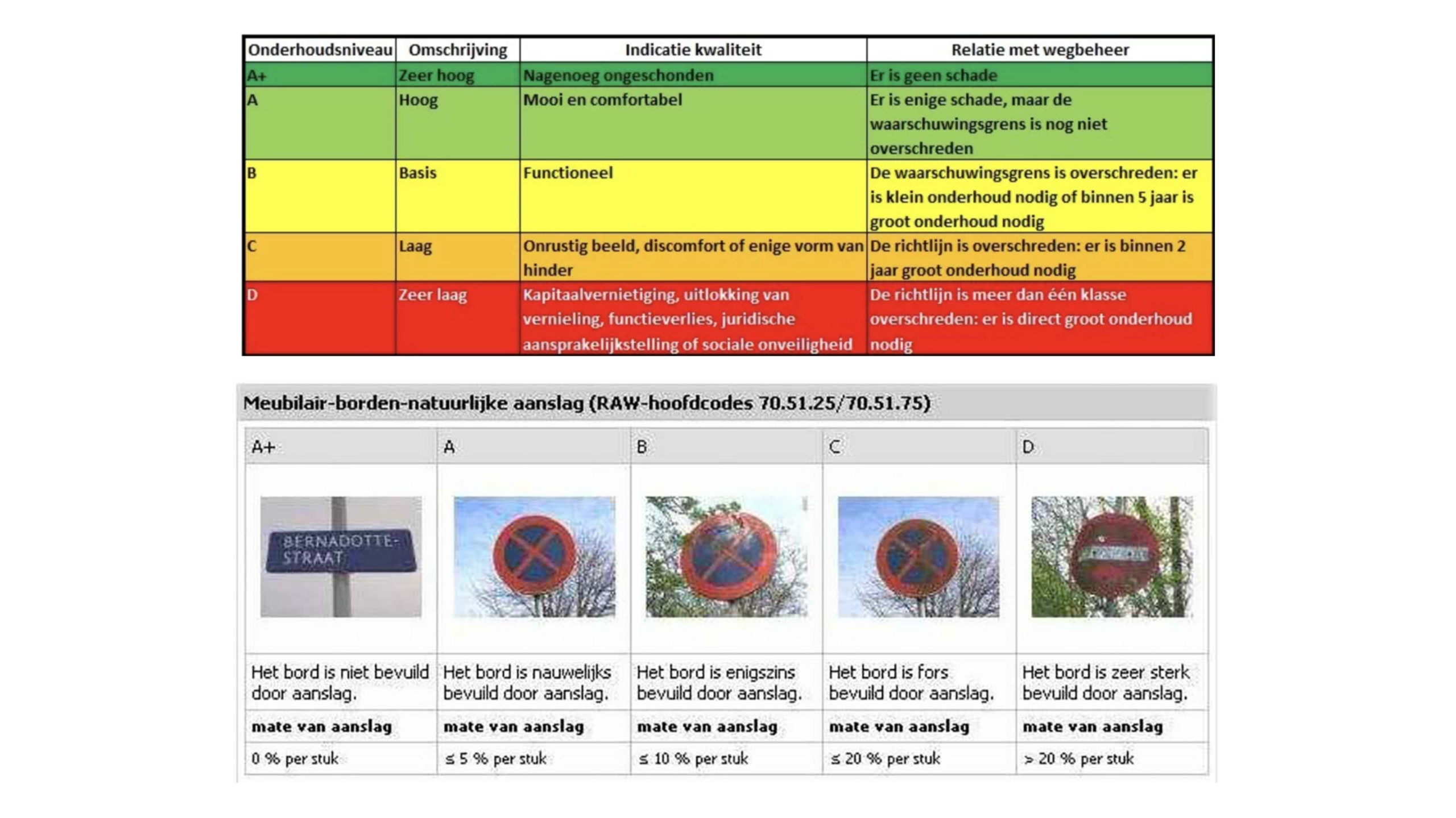 Dankzij onze digitale registratie volgens het CROW-IMBOR-model beschikt u over een compleet overzicht van alle verkeersborden in uw areaal. U ziet in één oogopslag welke borden onderhoud nodig hebben, wanneer ze voor het laatst zijn gereinigd en wat de verwachte levensduur is. Zo kunt u onderhoudsbudgetten nauwkeurig plannen, prioriteiten stellen en de kwaliteit van uw openbare ruimte beter onderbouwen.